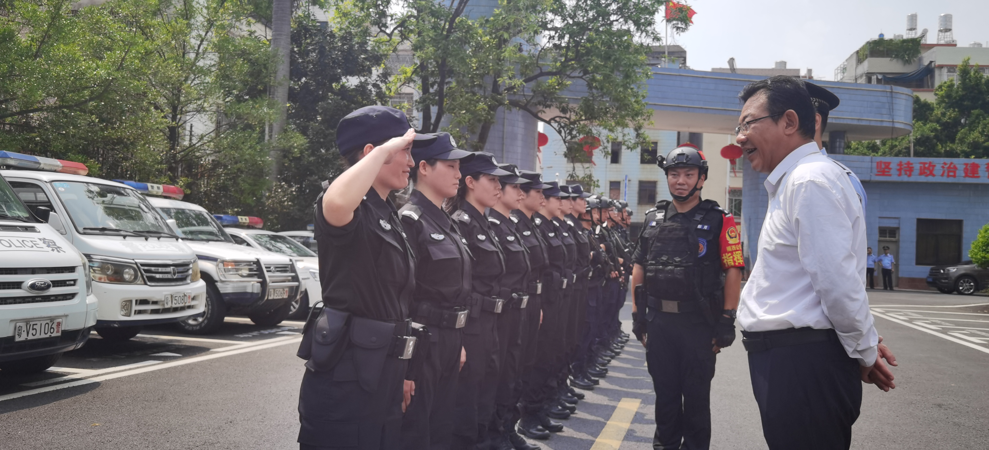 劉端雄指出,國慶假期人流量、車流量激增,社會管控壓力增大,安全維穩工作尤為重要。要求全體公安干警們要以更加飽滿的精神狀態投入到執法監管中來,加強路面管控,做到在崗在位,及時做好處置突發事件的應急準備,發揮好“尖刀”和“壓艙石”作用;要牢固樹立“一盤棋”思想,不可有絲毫懈怠,始終繃緊安全穩定這根弦,以時刻不放松的狀態,扎實抓好國慶期間各項安保維穩工作,堅決守住安全底線紅線;要始終履職盡責、忠誠擔當,認真做好節日期間值班備勤,維護好節日期間的社會秩序,為全縣人民群眾歡度節日營造安全、穩定、祥和的社會環境。